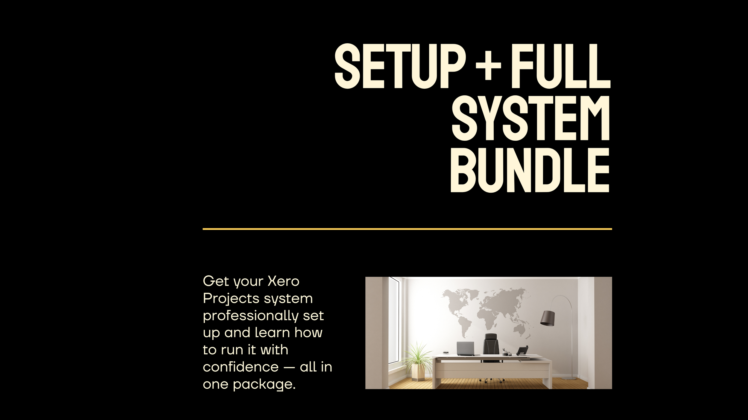 The complete Xero Projects system + 2 hours of one-on-one help to get it running smoothly from day one.